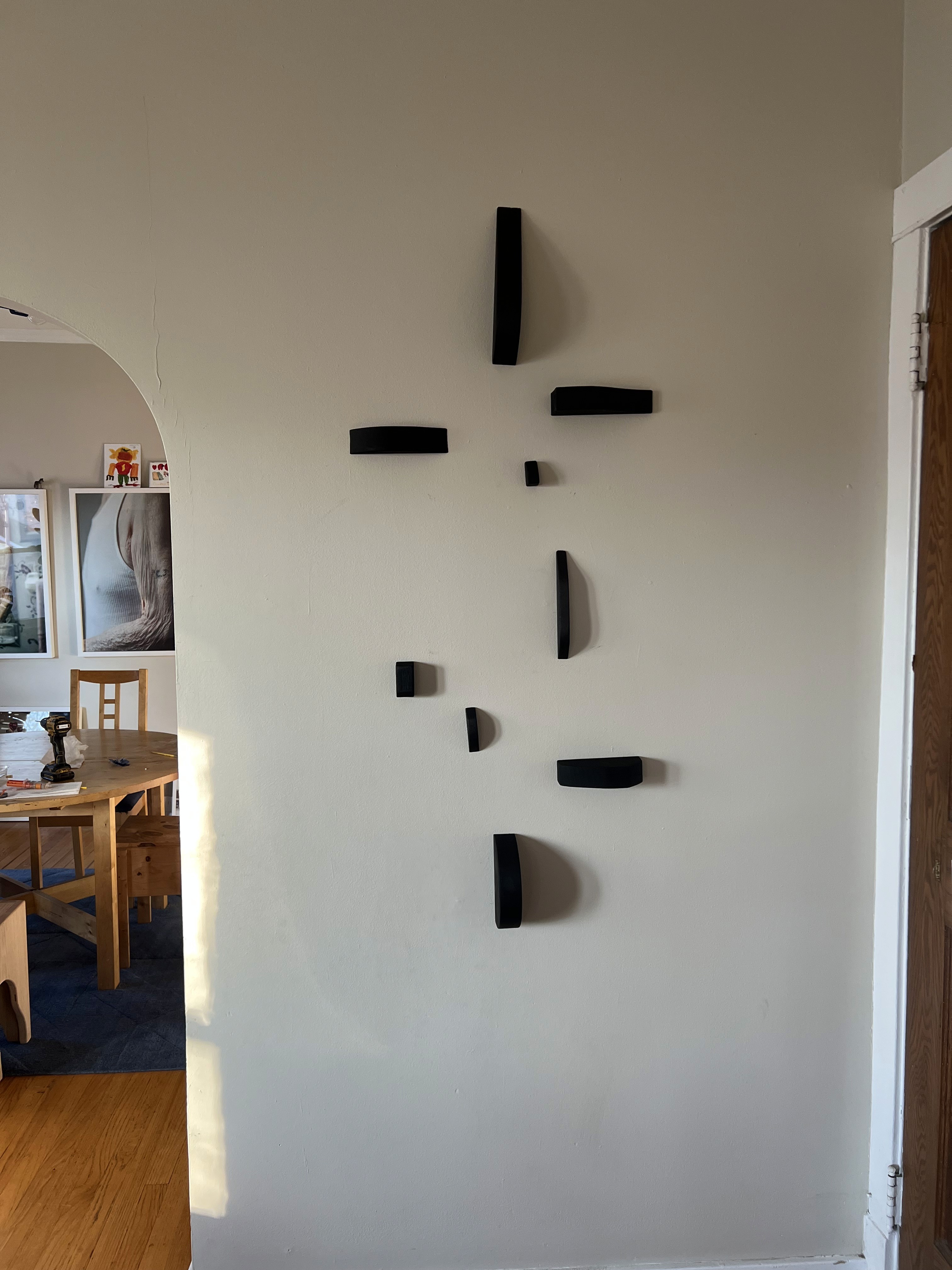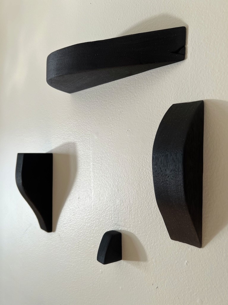 Rotate, switch out, trade, offset – every iteration makes for a new design. Wall-mounted magnets meet magnets countersunk into the walnut for a flush fit.